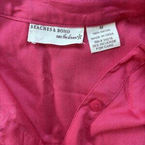 This sleeveless dress from Beaches & Boho features a vibrant pink hue with exquisite floral embroidery on the back. Its button-down design offers ease of wear, while the rayon fabric ensures a comfortable fit for warmer days. Crafted with attention to detail, it is both stylish and practical.