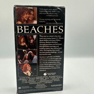 This is the 1989 movie "Beaches" on VHS, starring Bette Midler and Barbara Hershey. A heartfelt drama exploring friendship, it is in good pre-owned condition.