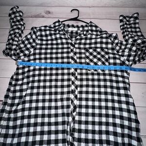 Beachloungelunch Black White Gingham Plaid Button Down Top Large Office Casual