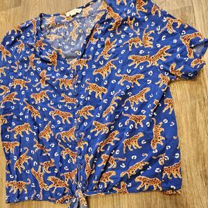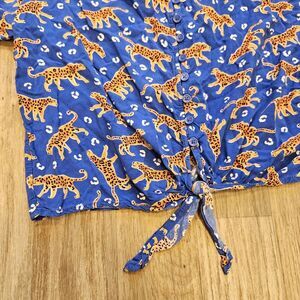 Beachlunchlounge Blouse Womens Size M Cheetah Leopard Tie Front Boho Cottage