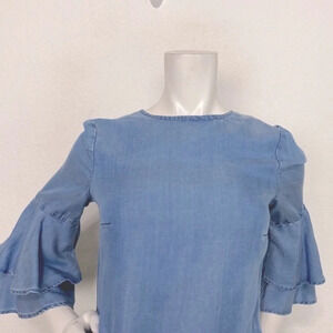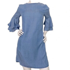 Beachlunchlounge Coastal Denim Chambray Ruffle Sleeves Pockets Bohemian Dress XS
