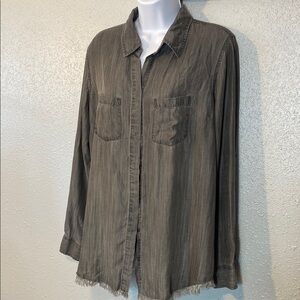 Beachlunchlounge Gray Button Down Shirt with Relaxed Fit Frayed Hem