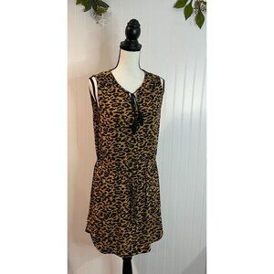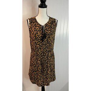 Beachlunchlounge Leopard Print Dress Medium Viscose Tassel Tie Waist & Neckline