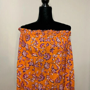 Beachlunchlounge Orange Floral Off the Shoulder Top