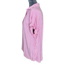Beachlunchlounge Pink & White Striped Button-Up Collared Shirt L
