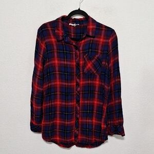 Beachlunchlounge Red Blue Plaid Pocket Western Grunge Button Down Shirt Size M