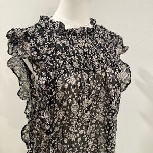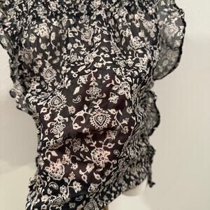 Beachlunchlounge Ruffle Sleeveless Blouse Black White Floral Women S Boho Chic