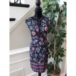 Beachlunchlounge Sheath Dress Women's XL Multi Floral Sleeveless Drawstring Neck