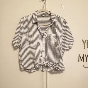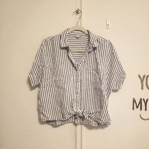 Beachlunchlounge Stripe linen cotton crop top tie