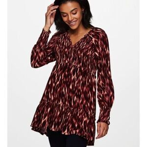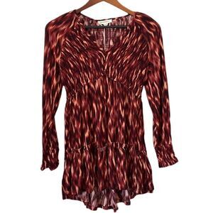 Beachlunchlounge Talia Brush Stokes Tunic Top. New with tags! Long sleeve v-neck tunic. Ruffled with back drop hem.