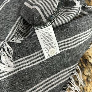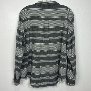 Beachlunchlounge White Gray Striped Frayed Hem Button Down Shirt Size XL