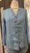 Stylish light blue chambray shirt with button-up front, long sleeve button cuffs with smocked back. Perfect for casual wear.
