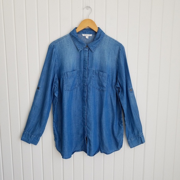 Beachlunchlounge Women's Large Button Front Chambray Shirt