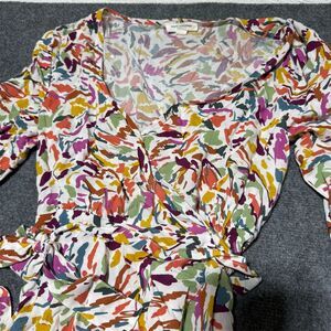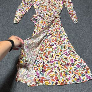 Discover effortless style with this beachlunchlounge wrap midi dress, a perfect blend of comfort and chic. The multicolor abstract print adds a splash of vibrancy, making it a standout piece for any casual occasion. The V-neckline and belted waist create a flattering silhouette, while the ruched long sleeves add a touch of elegance. Crafted from soft viscose, this dress promises all-day comfort. Whether you're out for brunch or a casual day out, this dress is your go-to choice. This item is pre-owned, offering you style with a story.