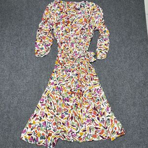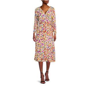 Beachlunchlounge Women's S Multicolor Wrap Midi Dress V-Neck Casual