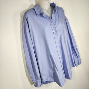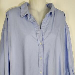 Beachlunchlounge Womens Shirt Blue 100% Cotton Button Up Long Sleeve Size Large