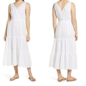 Beachlunchlounge Yuna Cotton Poplin Tank Top V-Neck Midi Dress White Size Small