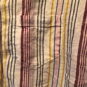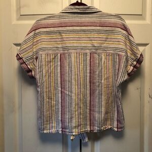 This top is in excellent pre-owned condition. It is a light and airy top. It is striped and ties in the front.