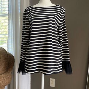 beach lunch lounge striped top. Size M. Great condition. Fun sleeves. Unique look.
