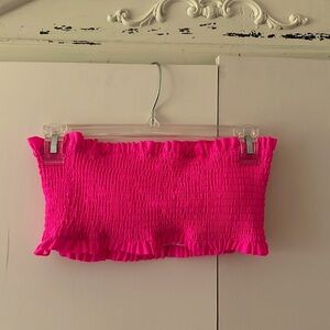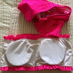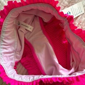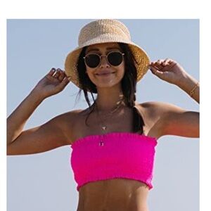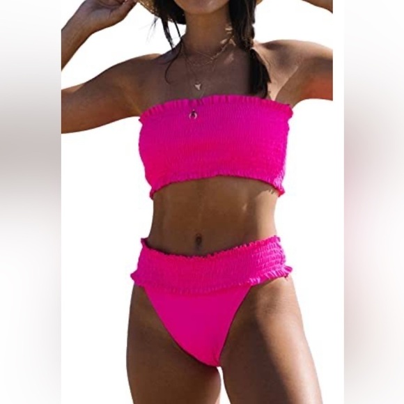 NWT Beachsissi Women's Smocked Stringy Selvedge Bathing Suit Solid Rose Red Bikini Set size S