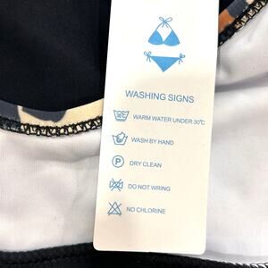 Beachsissi Black Tan Leopard Print Front Knot Bathing Suit Bikini Top. Pads are removable. NWT. Size Medium. No content tag, feels like spandex/polyester and/or nylon. Measurements laying flat: