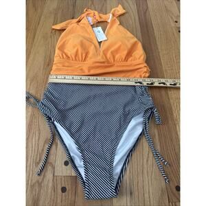 Beachsissi NWT Medium Cheeky Bottom Gold Black White Stripe Women