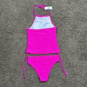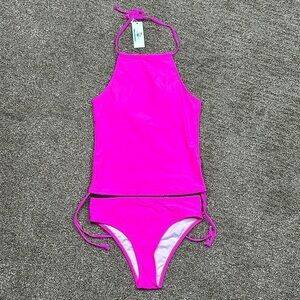Beachsissi Neon Pink Halter Tankini High Waist Swimsuit Bikini Size Small