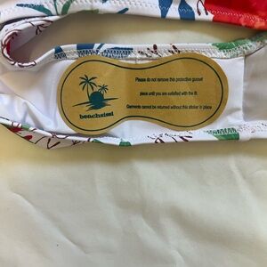 Vibrant red tankini set by Beachsissi. Perfect for a stylish beach day. This is not a deep red but has a hint of pink. Bottoms are higher for tummy control. Top crosses in the back with adjustable straps and has ruching on the sides. Also has removable cups and the protective liner attached. Comes in original bag.
