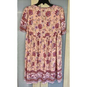 Beachsissi Summer Dress Womens Sz M Pink Floral Short Sleeve Tassels Bach Casual