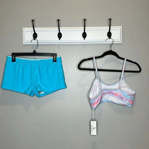 Beachsissi Two Piece Bathing Suit with Shorts Marbled Watercolor Design Medium