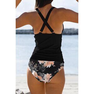 Beachsissi Women's Cute Floral Print Swimsuit V Neck Tummy Control Tankini (Top)