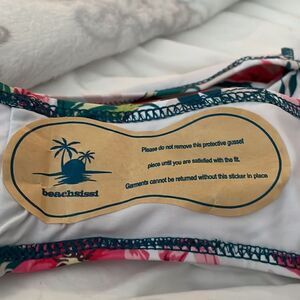 Beachsissi Floral Tropical Bikini Bottom Size Small White Green White