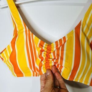 Beachsissi Orange Yellow White Striped Bikini Top NWT!