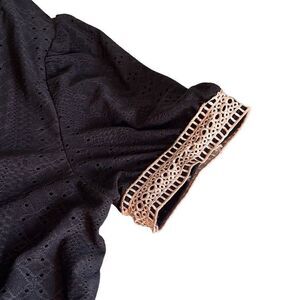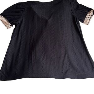 Beachsissi Women's Black V-neck Lace Insert Casual Top Size Medium