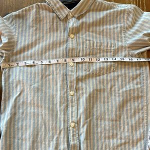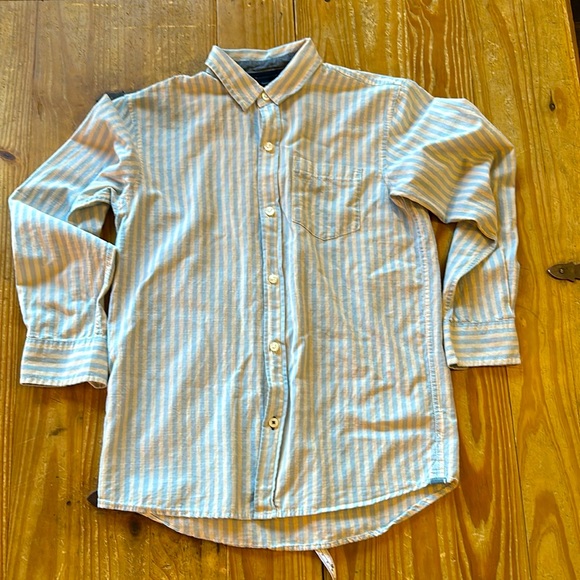 Classic & Beachy. Great button down from the Gap. Boys sizing, but unisex styling. Kind of a brushed cotton, so less crisp than a traditional button down. Elevated casual.