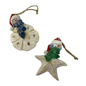 Beachy Christmas Ornaments - Snowman on a Starfish, & Snowman on a Sand Dollar