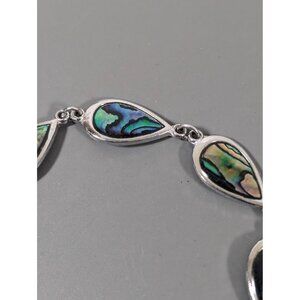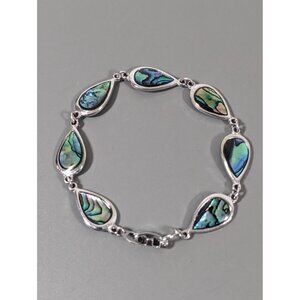 Beachy Coastal Blue Abalone Shell Teardrop Chain Bracelet Silver Tone 7"