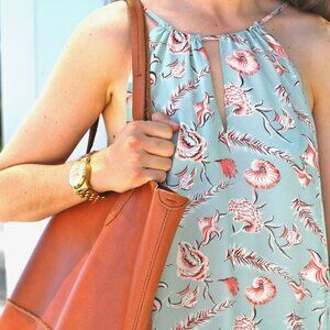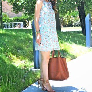 The most perfect little summer dress! Ideal for dinner out, a day at the beach, a baby shower, bridal shower, wedding guest, or lunch with friends. This flowy, little Forever 21 dress delivers on style, color, and easy, breezy vibe. Coastal colors, mint green with pops of a scarlet orange in the seashells, fish, and sea weed like florals. Keyhole detailing in the front and mimicked in the back with an adorable tie with turquoise stones. Shorter in length. 100% Polyester lining and shell.