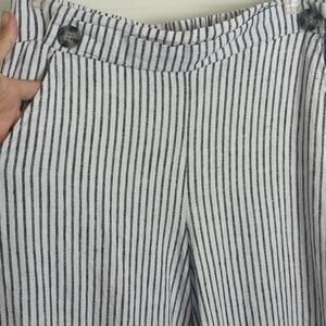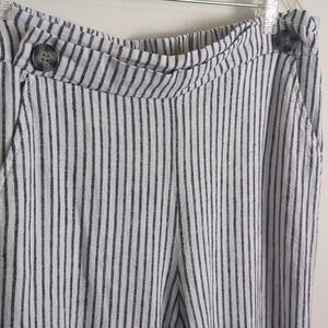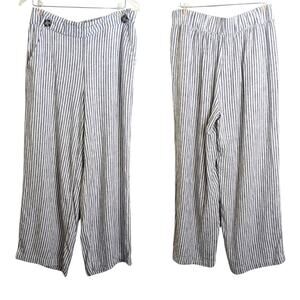 Beachy Lagenlook Straight Wide-leg Pull-on Striped Pants Pockets Women's size L