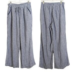 Beachy Loungewear Linen Rayon Striped Pull-on Straight Wide Leg Pants Women's L