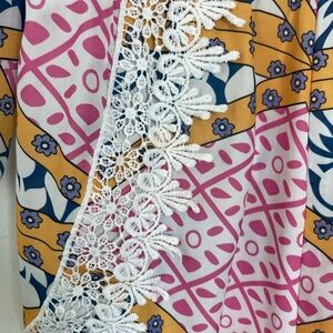 Beachy Wide Sleeve Lightweight Pull On Romper Cover Up with Lace Detail Size L