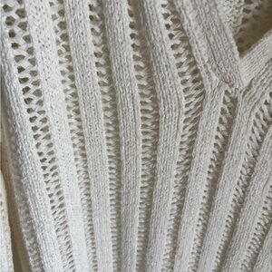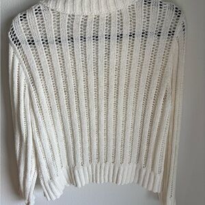 Soft and light weight white knit sweater that is perfect for spring and summer near the water. Wear over a bathing suit of with linen pants for an elevated sun soaked look.