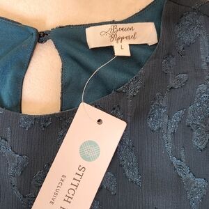 NEW with tags Beacon Apparel Jacquered A-Line Short Puff Sleeve Top Size L Teal Blue/Green.