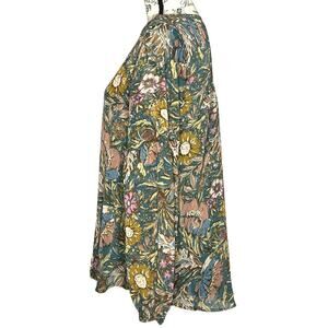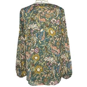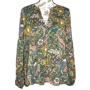 Beacon Apparel SMALL Floral Patterned Shiny Thread Detail Split Neck Blouse Top
