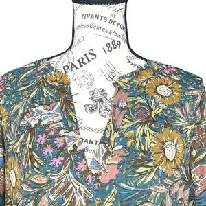 This boho-chic floral blouse features a fully lined body with sheer sleeves for an airy, romantic feel. The sleeves are fitted at the upper arm before billowing out just above the elbow for a statement silhouette. Shiny thread detailing adds a subtle shimmer, elevating the intricate floral pattern. A relaxed fit and V-neckline complete the effortlessly stylish look.