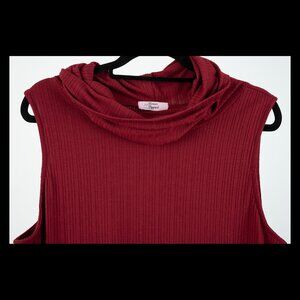 Beacon Apparel Womens Red Ribbed Cowl Neck Stretch Sleeveless Top XL EUC