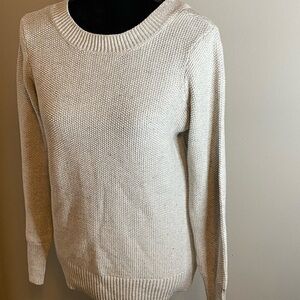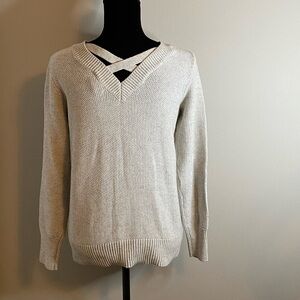 Beacon Cove Heather Gray Knitted Sweater. Has crisscrossing design on back neck area. Perfect for fall! In excellent condition, size S.
