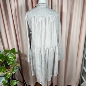 Beacon Cove Linen Tunic Dress Large Gray Long Sleeve Button Front Cottagecore