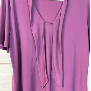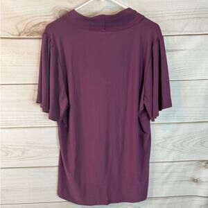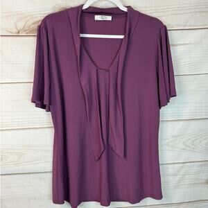 Beacon Purple Suz Tie Neck Flutter Short Sleeve Knit Top Size XXL