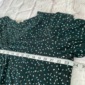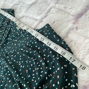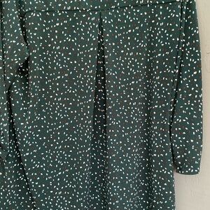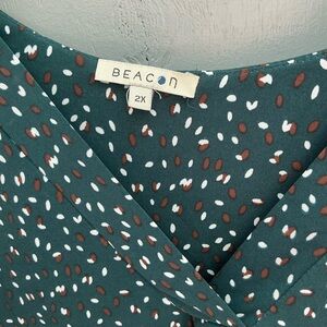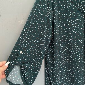 Elegant blouse with a teal base and white speckles. Ideal for versatile styling. Bin AD